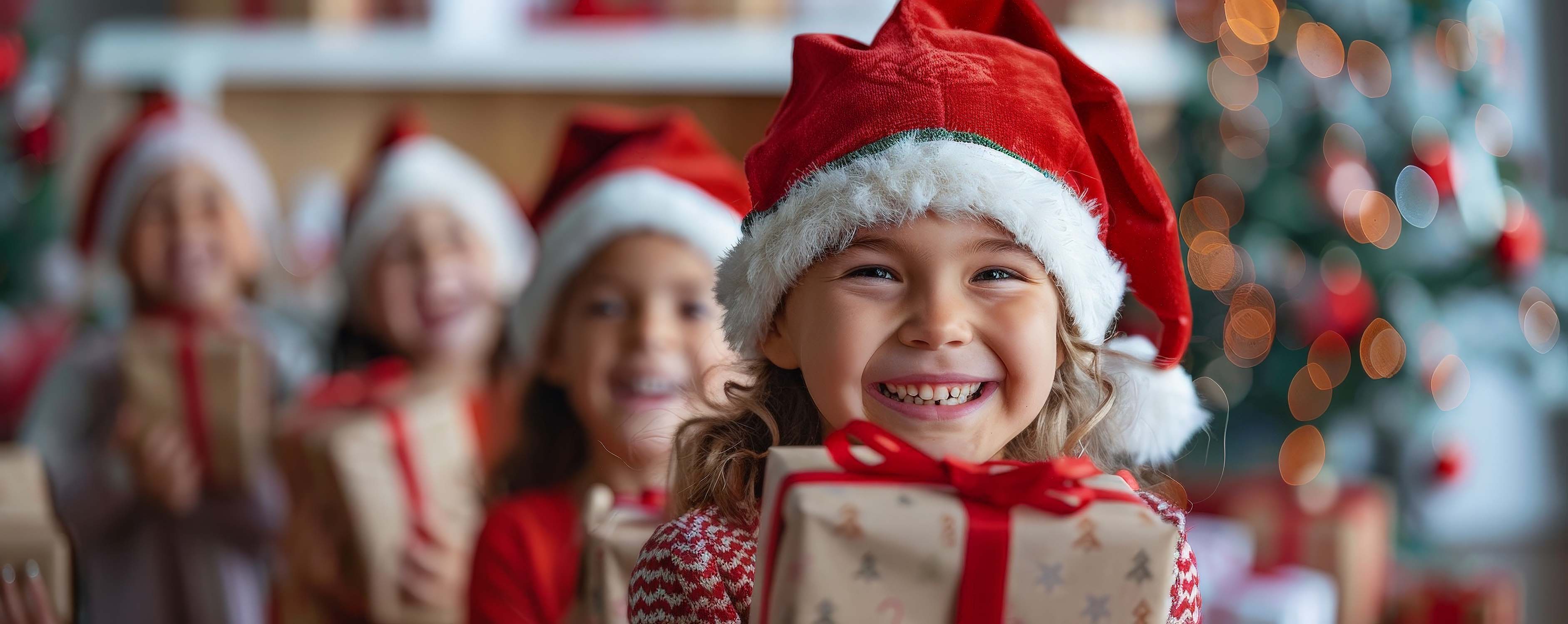 Nous intervenons sur la logistique le jour J : espace dédié, tables en comptoir, stockage des cadeaux par ordre alphabétique... La distribution s'intègre naturellement au déroulé. Si la configuration le permet, nous y installons l'espace photo avec le Père Noël : les enfants posent et repartent avec un souvenir imprimé…