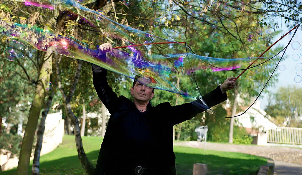 En déambulation ou en point fixe, notre artiste crée de magnifiques Bulles de savons géantes !