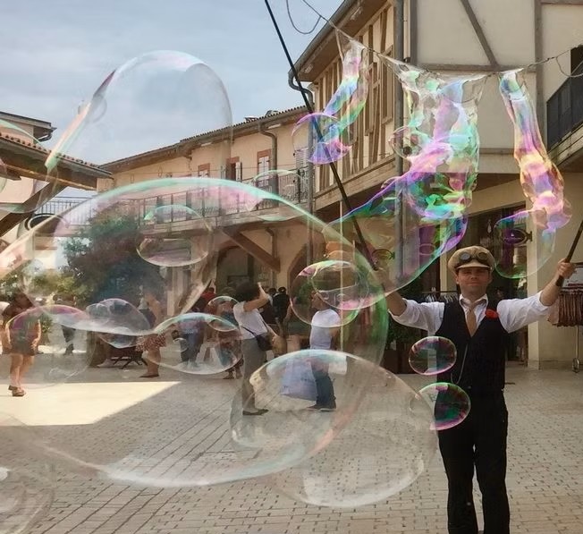 Un spectacle de magie en plein air, au décor éphémère et féerique ! Des bulles géantes aux nuages composés de centaines de petites bulles, les enfants seront émerveillés par cette animation unique et originale. À la fois élégantes et ludiques, les bulles, dont les formes se transforment sans cesse, offrent un spectacle fascinant pour les yeux, dont on ne se lasse jamais. Cette animation se déroule uniquement en extérieur.