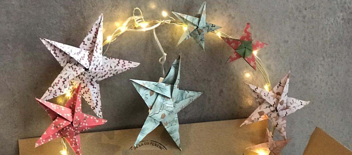 Réalisation d’une couronne lumineuse avec étoiles en origami.