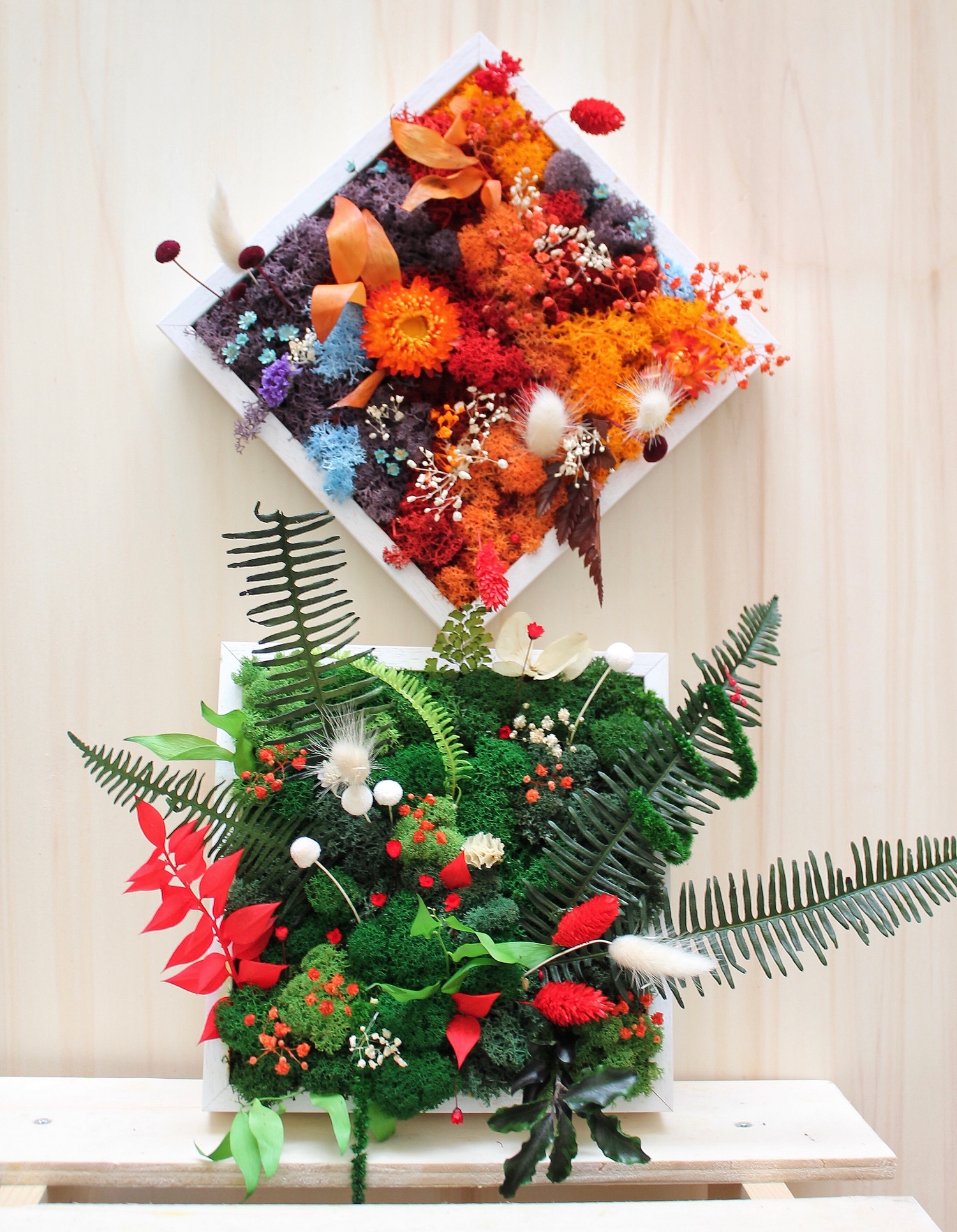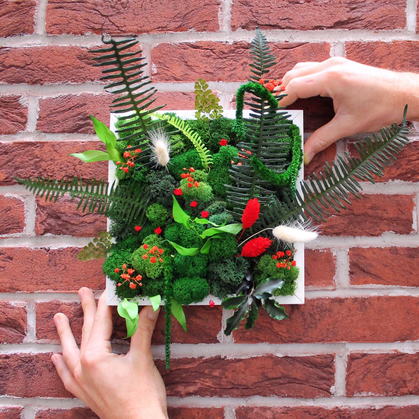 Le cadre végétal est l’allié parfait pour apporter une touche de verdure à votre intérieur sans pour autant avoir la main verte. Composé de végétaux stabilisés, votre cadre tient dans la durée et ne nécessite aucun entretien ! Choisissez parmi un large choix de plantes : mousse, lichen, fleurs séchées, feuillage… et créez un carré coloré à votre image ! Votre cadre se transforme ensuite en une décoration murale, à disposer chez-vous ou dans votre bureau.
