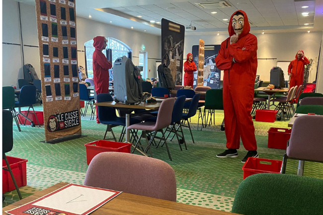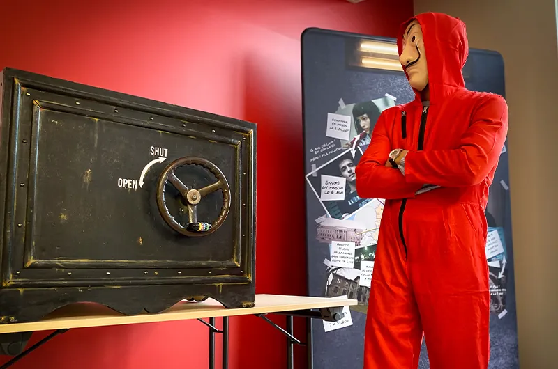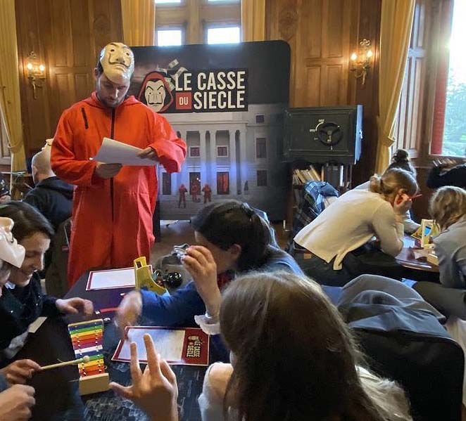 Le professeur a besoin de votre aide pour l’aider dans sa quête. Pour y parvenir il faudra travailler en équipe, utiliser les compétences des uns et des autres afin de résoudre les différentes énigmes qui vous seront proposées. Vous aurez 1h30 pour tenter d’ouvrir le coffre-fort de la banque. L’équipe la plus rapide sera récompensée mais, pour y parvenir, vous devrez collaborer avec vos adversaires. Stratégie, cohésion et surtout communication seront les clés de la réussite.