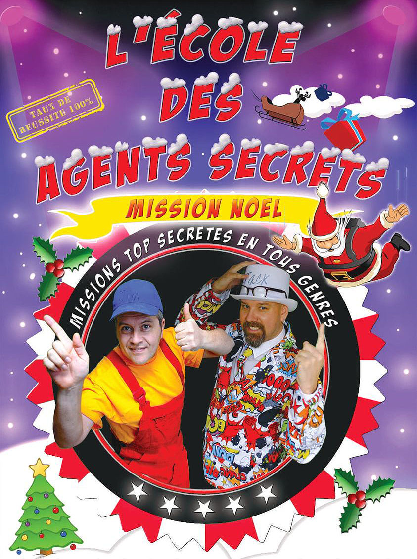 C’est la catastrophe ! Super Mini Méchant a volé la clé de l’usine des cadeaux du Père Noël ! Sans cette clé, il ne pourra pas distribuer les cadeaux aux enfants. Le Père Noël se voit donc dans l’obligation d’avoir recours à l’Ecole des Agents Secrets pour sauver Noël… Mais Jim, Jack et les enfants iront-ils au bout de cette mission ? L’Ecole des Agents Secrets est un spectacle dynamique, humoristique et pédagogique, avec plein de surprises au programme, des chansons, des jeux, des énigmes et surtout le public qui participe du début jusqu’à la fin !