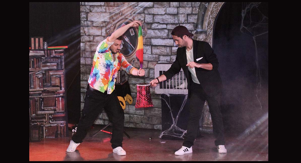 Nos héros sont à la recherche de Roussette, leur poule de compagnie. Au détour d’un chemin, ils découvrent un Manoir abandonné, l’ancienne demeure d'un grand magicien. Dans ce lieu mystérieux, aidés par les jeunes spectateurs, nos héros vont tenter de réaliser de nombreux tours de magie pour retrouver leur poule et ils ne manqueront pas une occasion pour faire virevolter tous les objets.