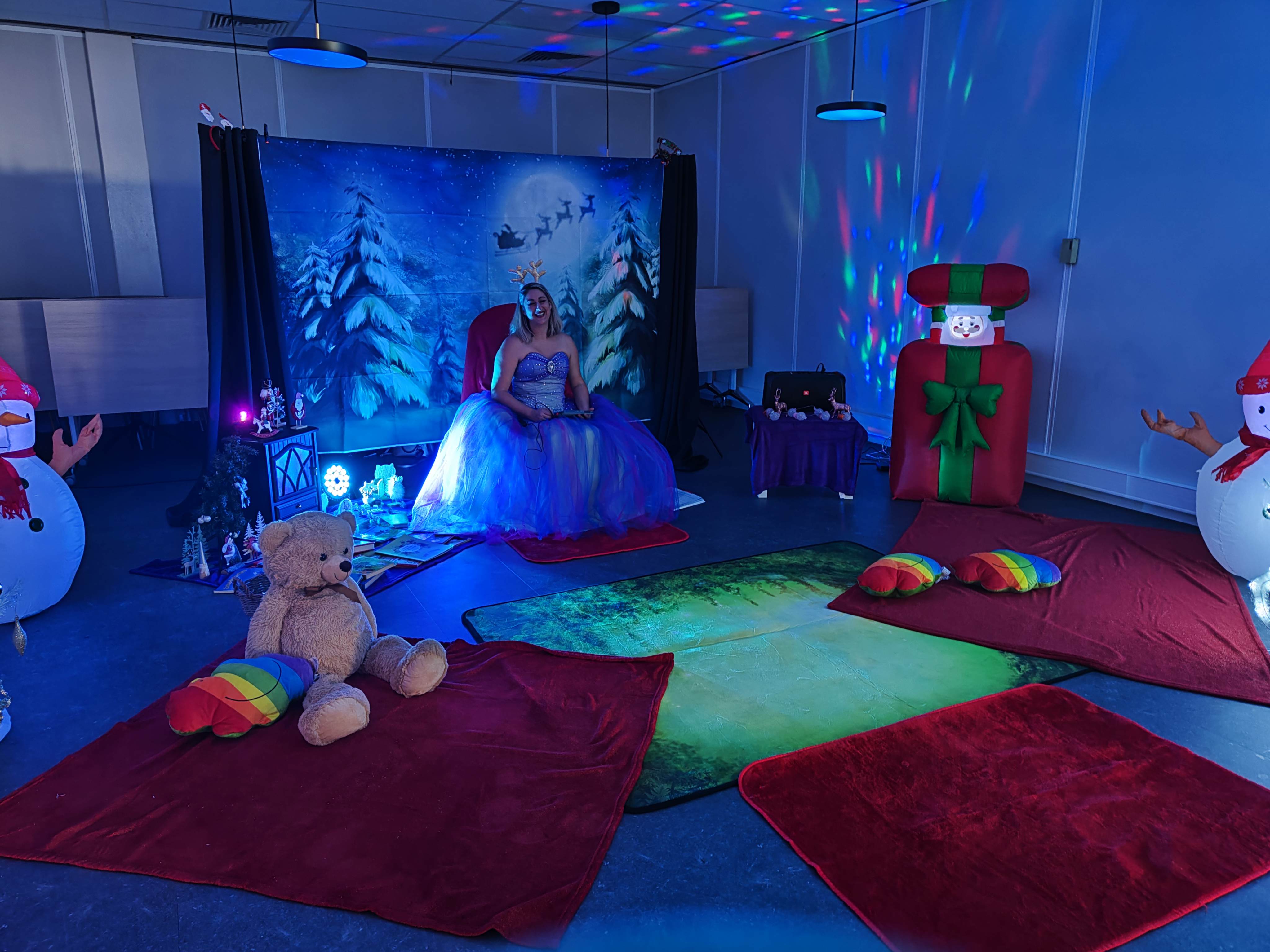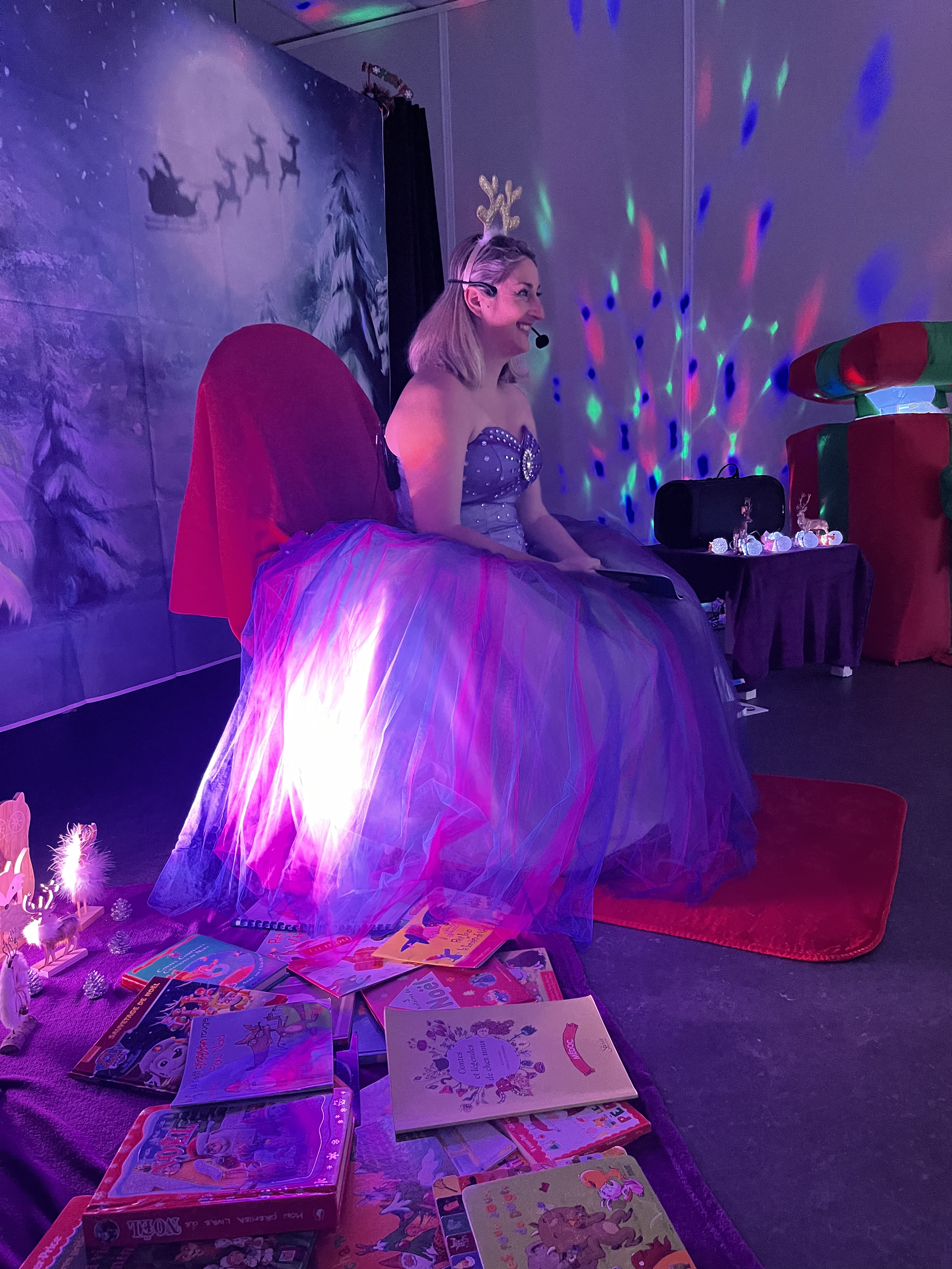 Notre conteuse, habillée en Princesse, tout droit sortie d’un conte de Fées, vous accueille dans un univers douillet, propice aux histoires… En fonction de l’affluence, tout au long de votre événement, elle alterne les récits, les chansons, les contes ; elle pose même avec les enfants pour des photos souvenir…