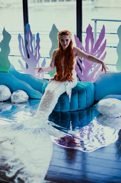Notre sirène emmène les enfants dans un voyage merveilleux au cœur des océans, où contes et légendes sous-marines prennent vie. Entre créatures fantastiques, trésors cachés et secrets des profondeurs, elle éveille leur curiosité et répond à toutes leurs questions, pour un moment d’émerveillement magique et inoubliable.