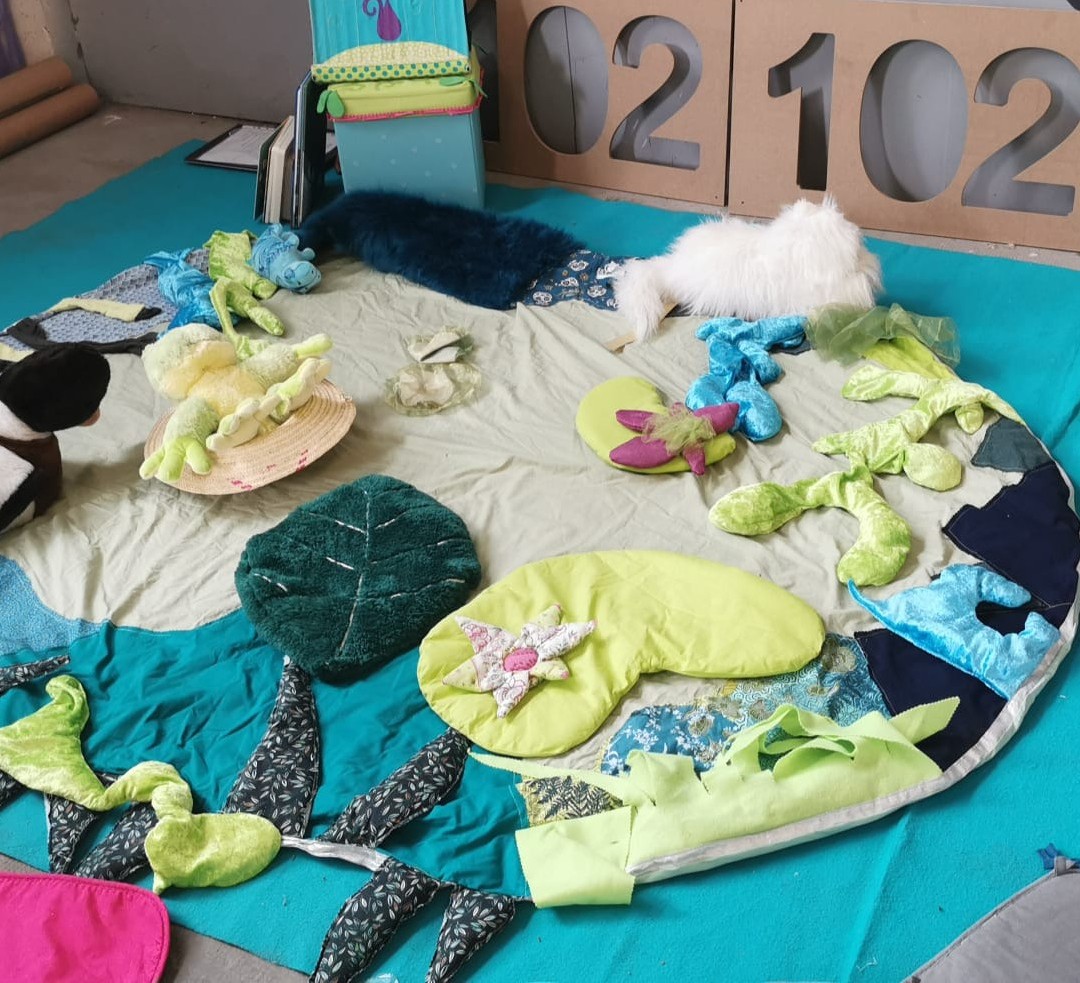 Imaginez un espace transformé en terrain d’aventure sensorielle : textures diverses, matières à manipuler, sons à écouter, couleurs à toucher… Le paysage exploratoire est une installation immersive et poétique, pensée pour les tout-petits.