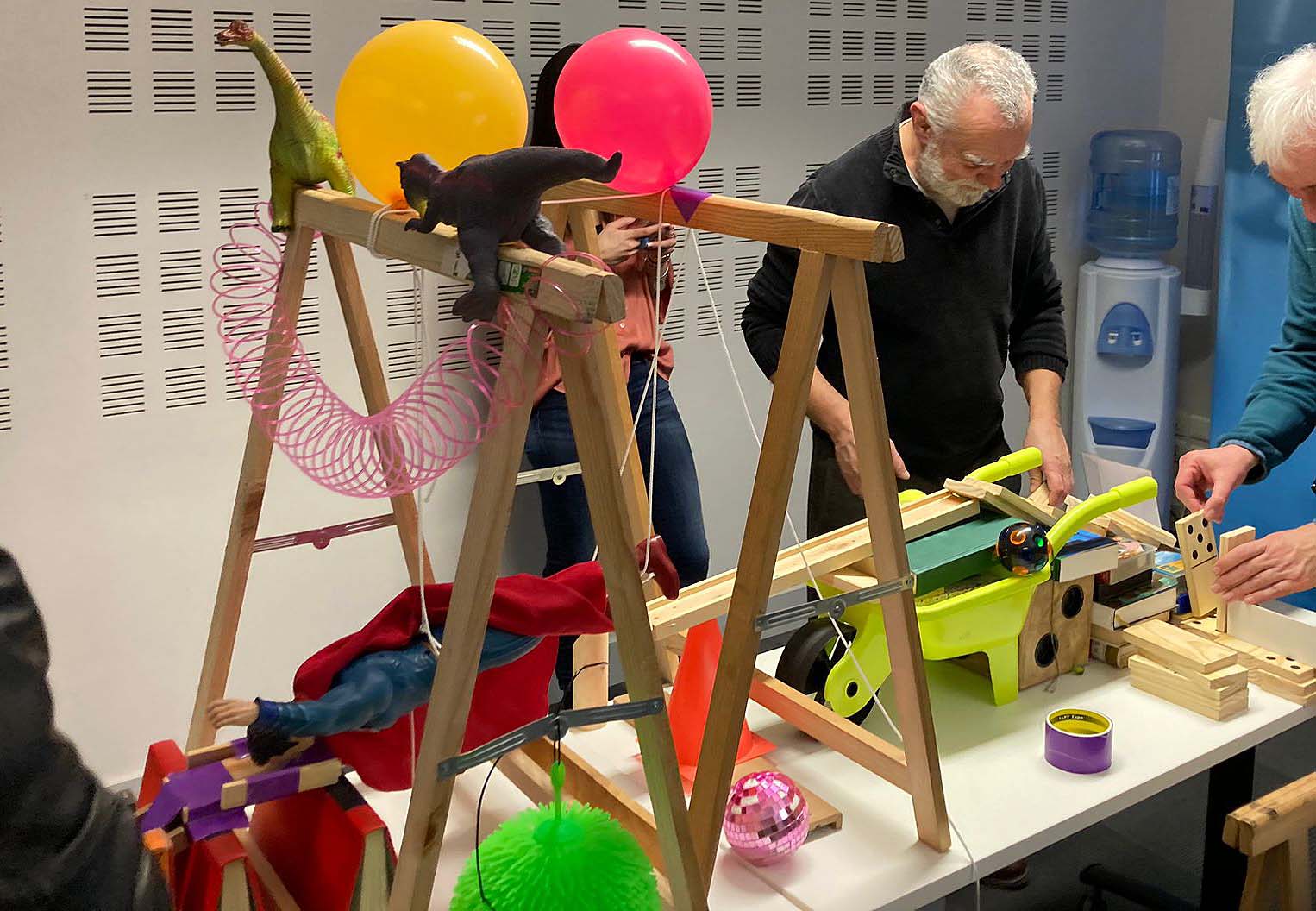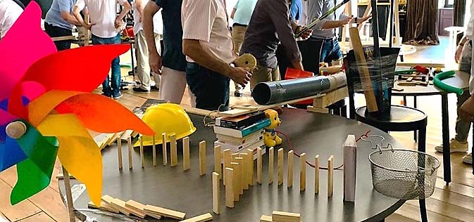 Pas d’affrontement, ni de classement… il s’agit d’une activité 100 % collaborative. Répartis en plusieurs groupes, vous allez devoir imaginer, créer et construire l’un des maillons de la chaine. Pour y arriver, vous aurez à disposition une multitude de ressources : balles, billes, tasseaux, tubes, jouets et autres objets du quotidien… autant d’éléments qui, une fois assemblés, devront s’enchainer sans obstacles pour garantir un succès collectif ! Esprit d’équipe, communication et créativité seront les maîtres mots pour mener à bien cette mission.