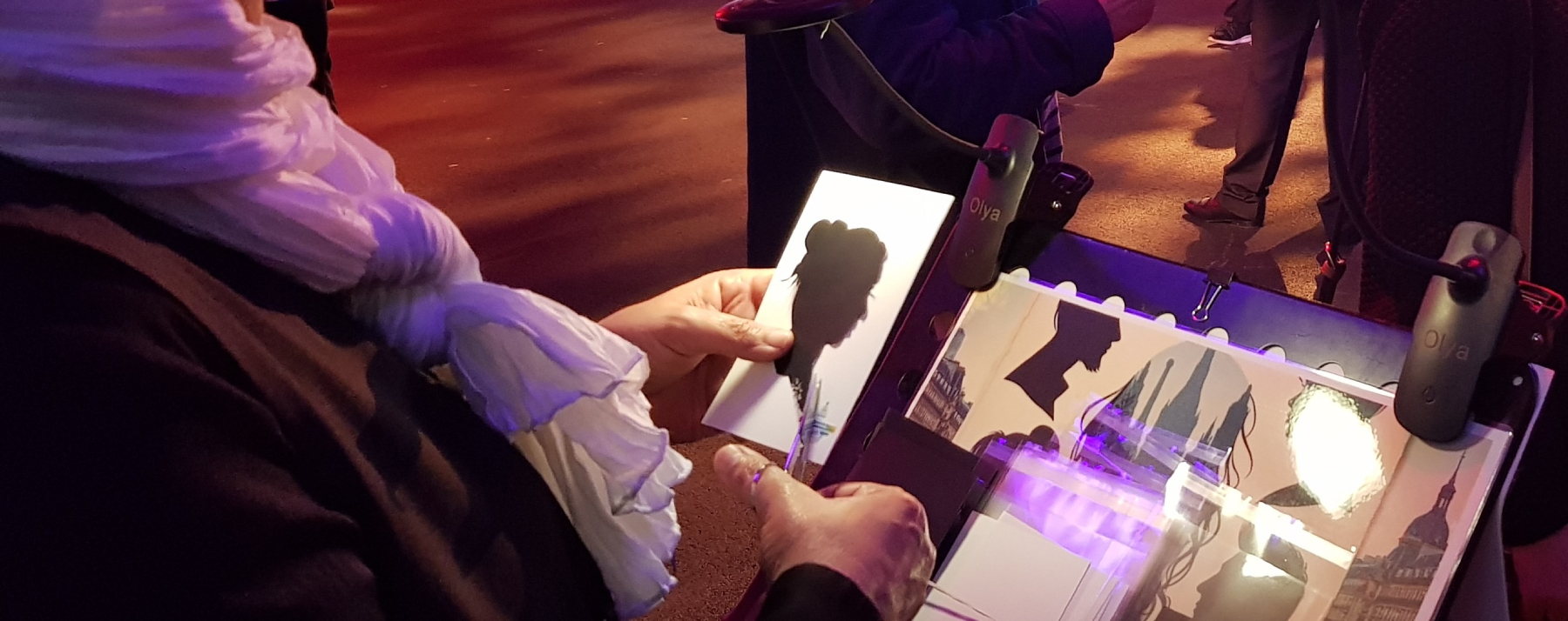 Plongez dans l’univers fascinant de l’Art du Silhouettisme, une pratique ancestrale où les portraits prennent vie au fil des ciseaux. Notre talentueuse silhouettiste offre à vos invités une expérience originale et rare. Avec des gestes minutieux et une créativité sans limite, elle capture l’essence des visages en quelques mouvements rapides, transformant de simples papiers noirs en véritables œuvres d’art.