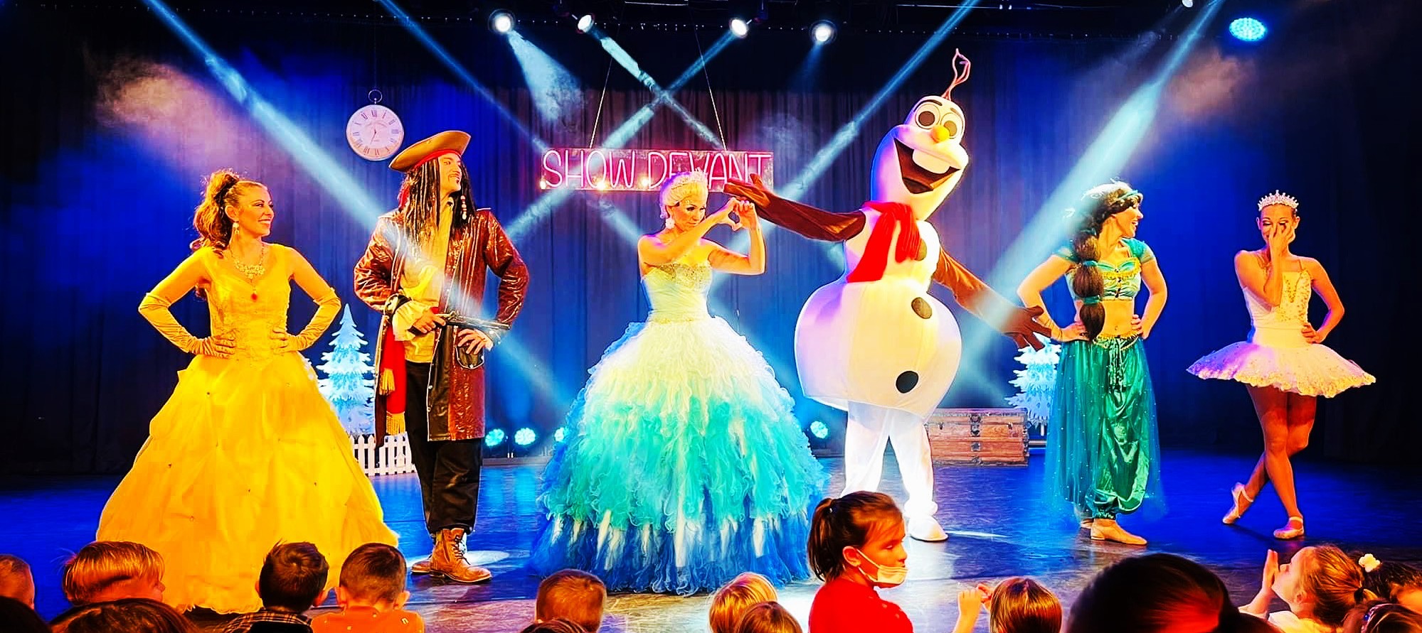 La Reine des Neiges est à la recherche de son ami Olaf... Elle va avoir besoin de l'aide du public pour déchiffrer les indices laissés afin de découvrir les différents mondes où elle va devoir se rendre (La Belle et la Bête, Aladdin, Pirates des Caraïbes, Casse Noisette). Cette comédie musicale allie chant, danse et théâtre. Durant un peu plus d'1h, vous parcourrez 4 mondes à la rencontre de différents personnages : La Reine des Neiges, Olaf, Belle, Jasmine, Jack Sparrow... Le petit plus : à la fin du spectacle, séance photos avec les personnages.