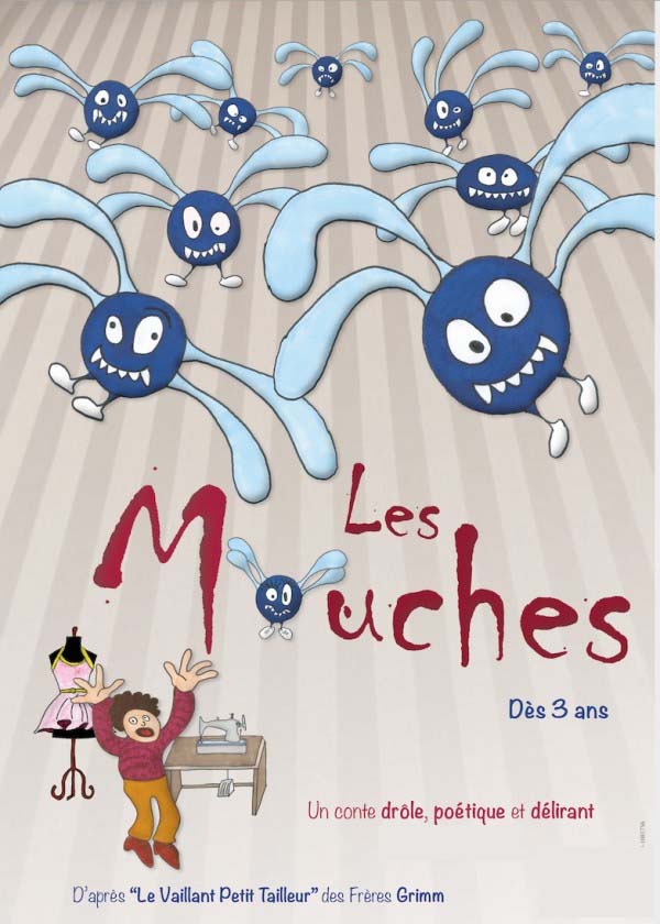 « Les Mouches », c’est un conte où se mêlent aventure et poésie et où la comédie peut parfois, aussi, être musicale. Vaillant est si fier d’avoir tué sept mouches d’un coup qu’il brode les mots « sept d’un coup » sur sa ceinture et part courir le monde, décidé à braver tous les défis ! De cet exploit nait un quiproquo qui l’entraine dans de multiples aventures, le tout raconté par la huitième mouche... celle qui a survécu ! Une histoire pleine de bravoure, de malice, d’effroi, d’éclats de rire et... de mouches !
