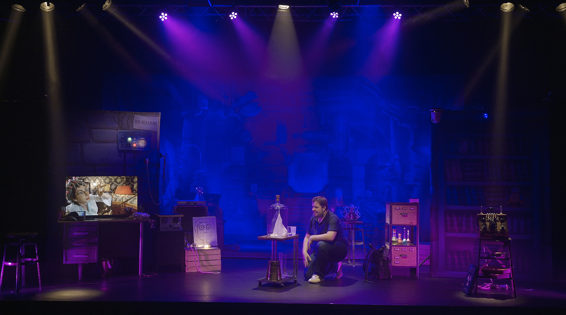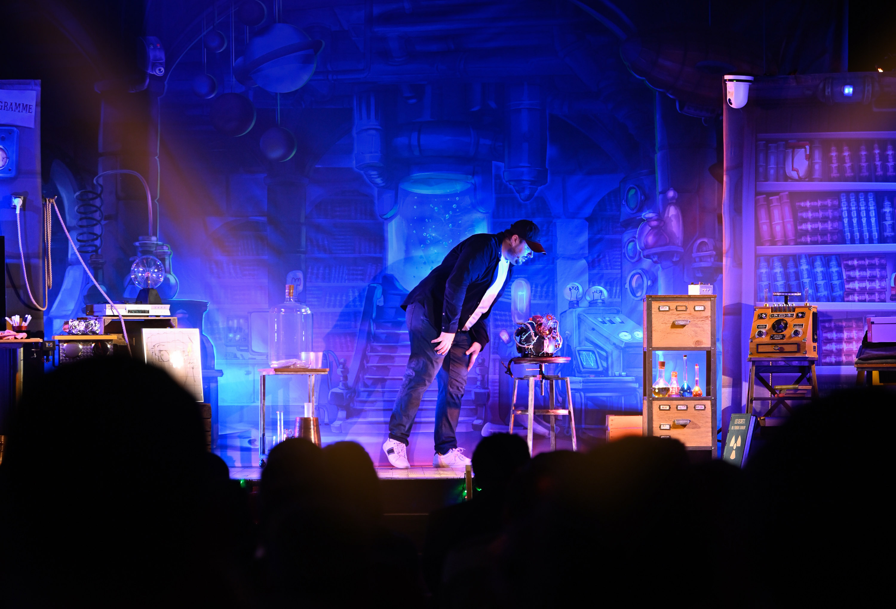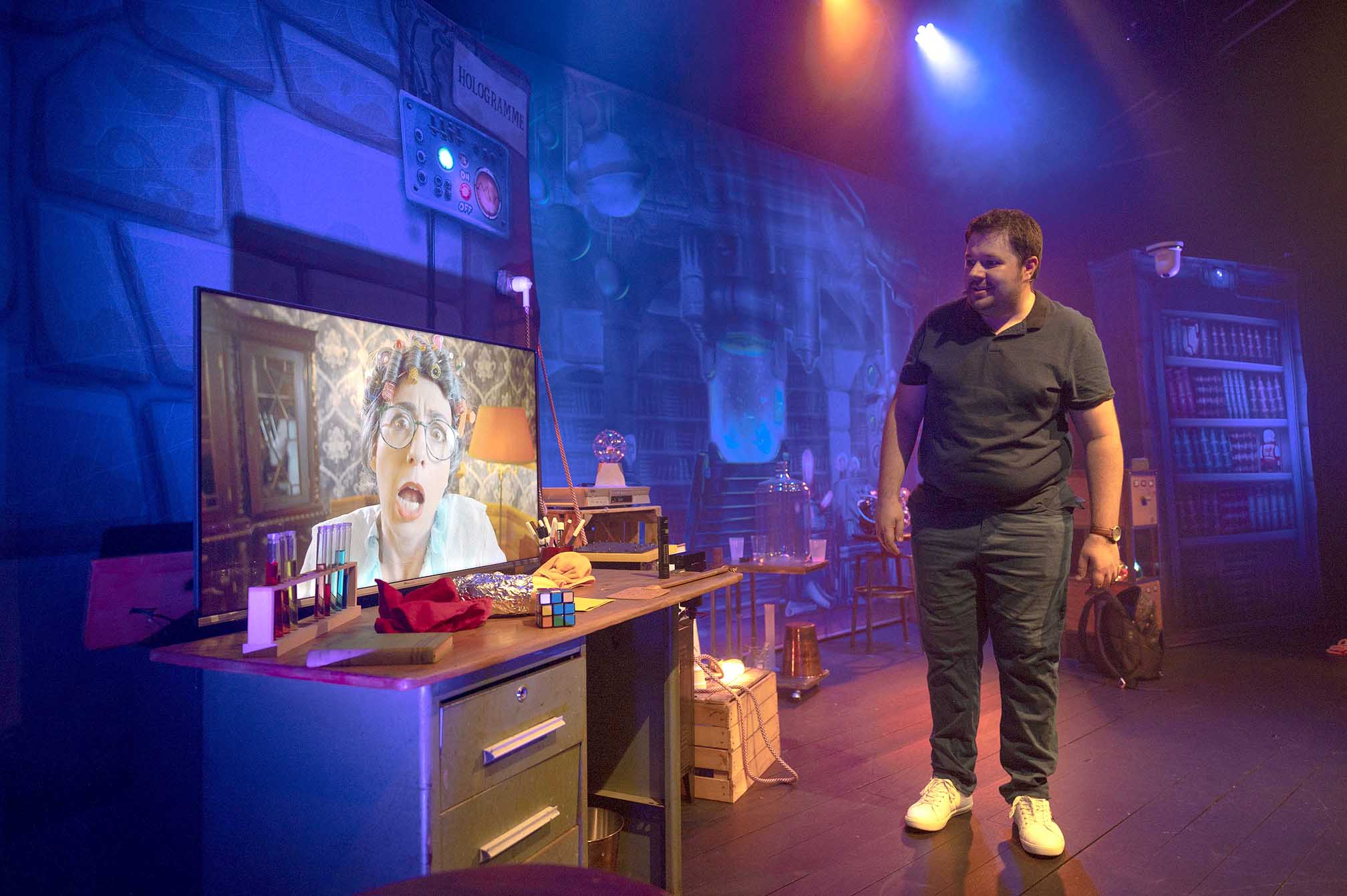 Benjamin, jeune homme passionné de sciences et de magie, vient prendre son service dans un laboratoire, pour la première fois, en tant que gardien de nuit. C’est une chance de pouvoir travailler dans le laboratoire de Miss Mac-Intoch, célèbre chercheuse connue dans le monde entier ! Benjamin doit réussir cette première nuit d’essai s’il veut obtenir ce job, mais attention, les consignes sont très strictes, il ne faut toucher à rien…