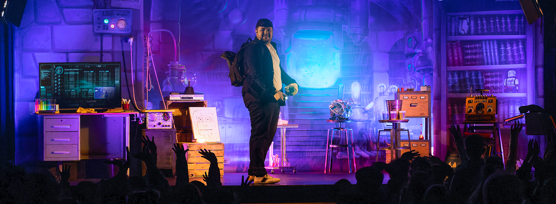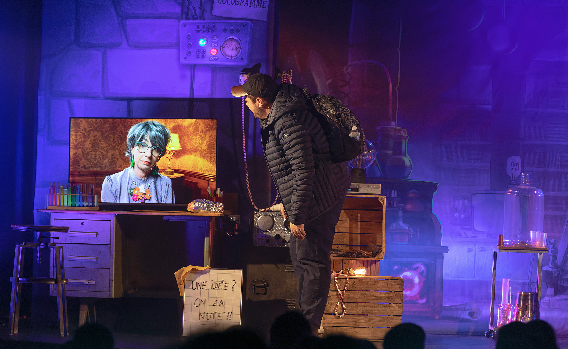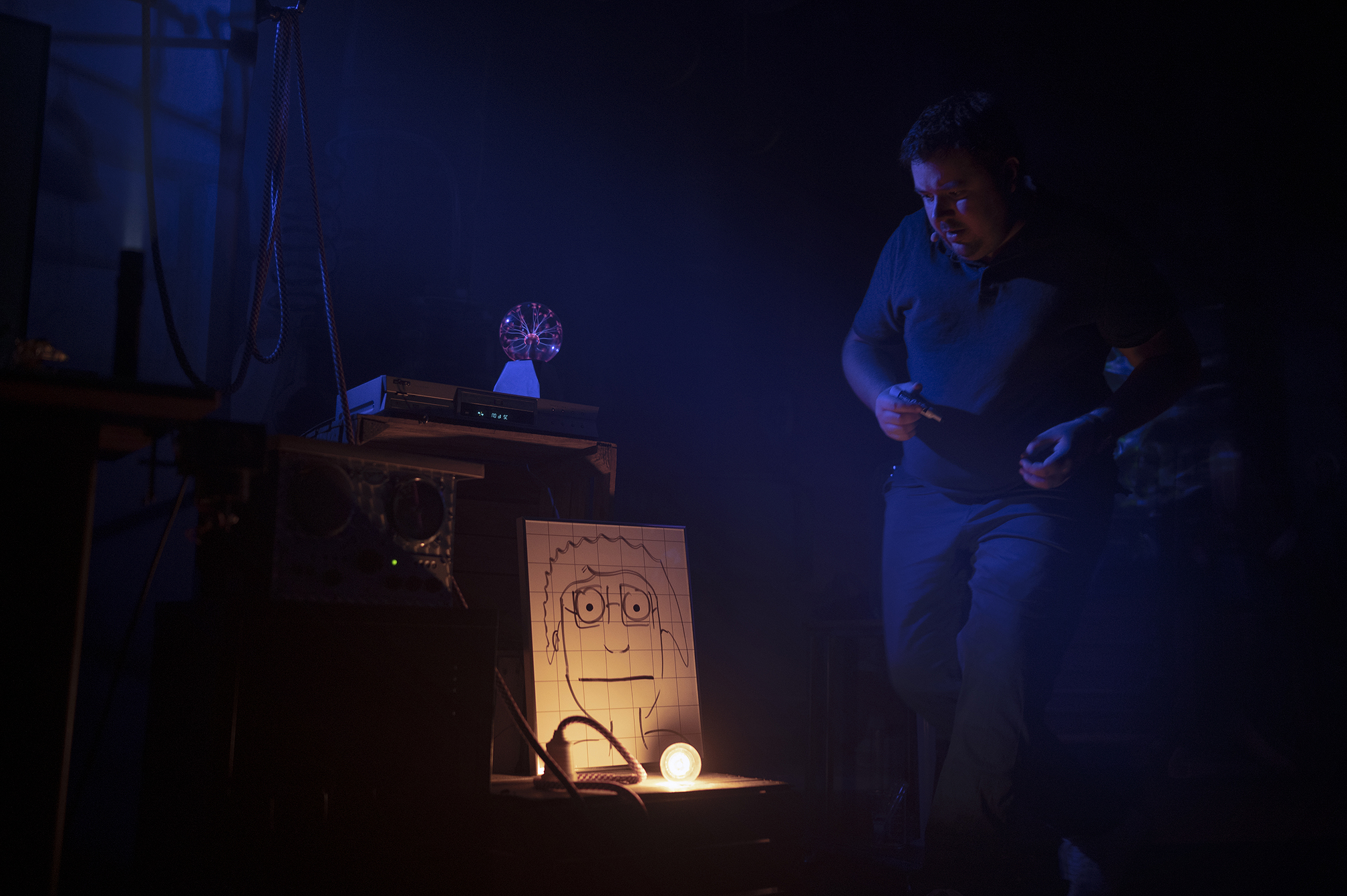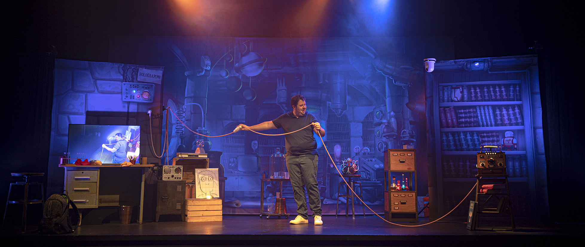 Benjamin, jeune homme passionné de sciences et de magie, vient prendre son service dans un laboratoire, pour la première fois, en tant que gardien de nuit. C’est une chance de pouvoir travailler dans le laboratoire de Miss Mac-Intoch, célèbre chercheuse connue dans le monde entier ! Benjamin doit réussir cette première nuit d’essai s’il veut obtenir ce job, mais attention, les consignes sont très strictes, il ne faut toucher à rien…